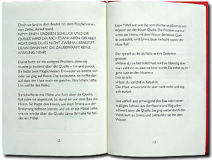 Damit hatte sie ein weiteres Problem, denn sie musste ja zweimal über die Quelle – hin und zurück. Sie hatte zwei Möglichkeiten: Entweder sie beeilte sich oder sie ging auf Risiko. Das bedeutete, sie hoffte darauf, dass der Hase noch ein gleiches Fläschchen hatte. Lisa wählte das Risiko.