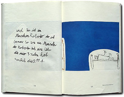 Und das ist ein Menschenroboter, der ist genauso wie ein Mensch. Der Roboter hat eine Uhr, die nur 3 Zahlen hat, nämlich die 0, 11, 6.